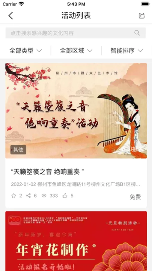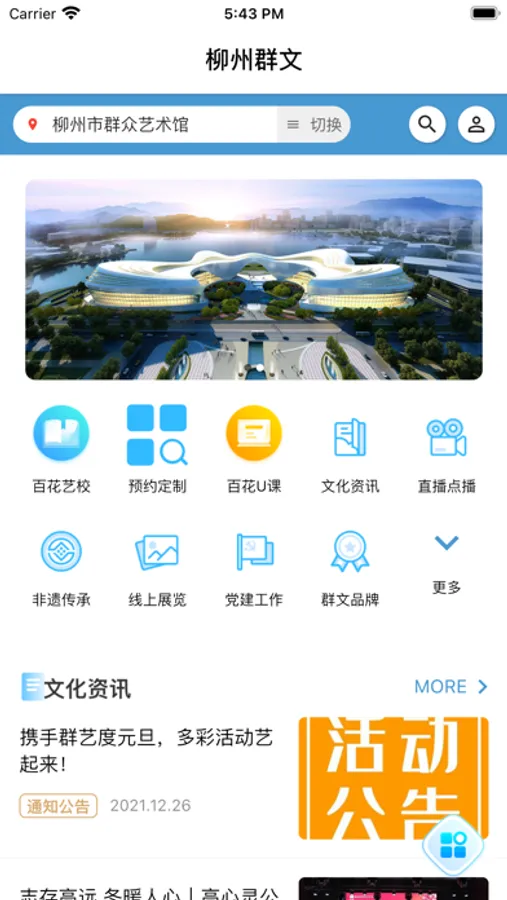 柳州群文是一款聚焦文化领域,提供公众文化生活服务的交互互联网平台,现汇集柳州全部的文体活动、场馆资源。平台中集活动预约、空间展示等功能为一体,为用户提供便捷的文化品质生活服务。