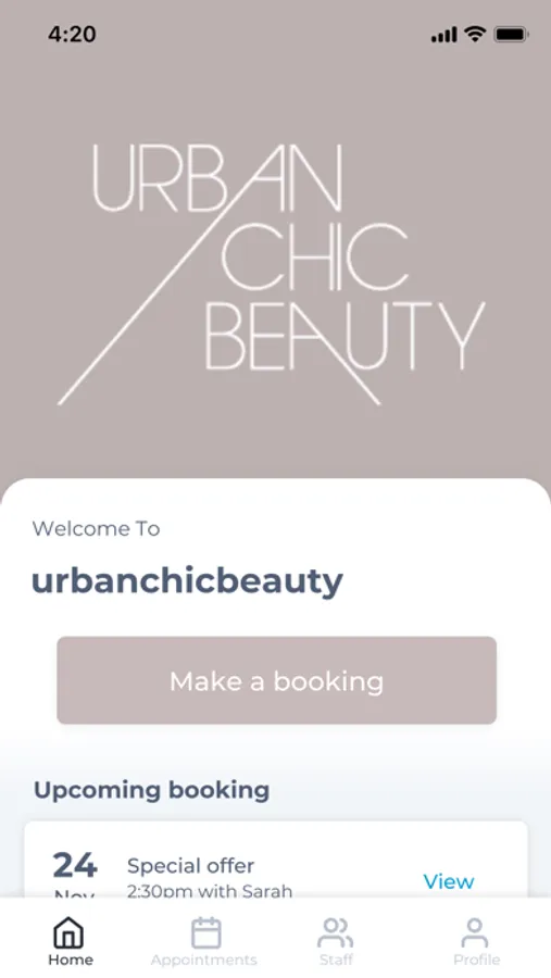 The urbanchicbeauty app makes booking your appointments and managing your loyalty points even easier. You're just a few taps away from feeling good and looking great!