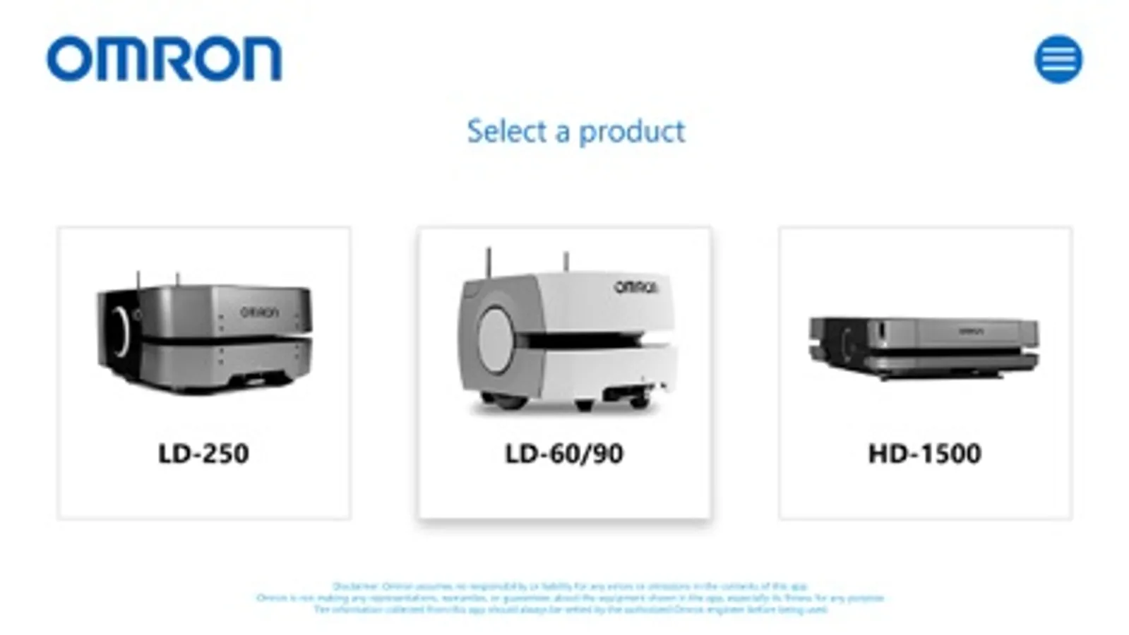 - Option to select four types of payloads to visualize on top of OMRON mobile robot LD60/90 - cart, conveyor, manipulator arm and UV lamp.