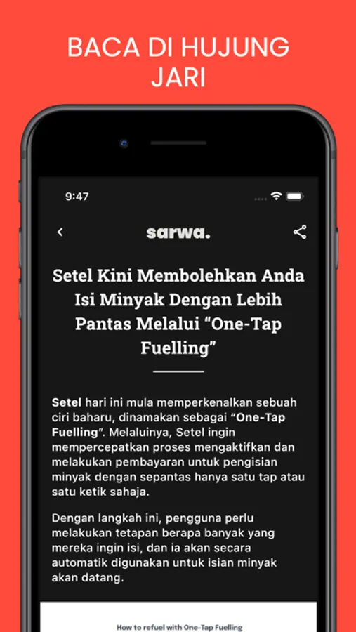 Sarwa merupakan sebuah aplikasi ringkas yang menawarkan kemudahan untuk pengguna mengikuti pelbagai berita dan artikel terbaru berkaitan teknologi, gajet, kewangan dan juga gaya hidup muslim. Semua kandungan ditawarkan dalam bahasa Malaysia, dan dipastikan sumber penerbitnya terlebih dahulu.