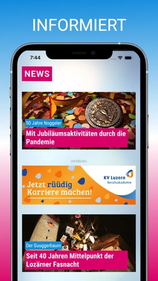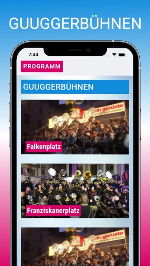 Die Vereinigte – kreativer und traditionsbewusster Dachverband von über 4'000 Guugger*innen und Fasnächtlern. Die App informiert umfassend über die Luzerner Fasnacht.