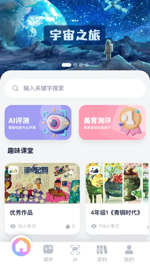 美育助教是一款由元始森林自主研发,集课程体系、课程学习、美育测评等功能于一身的美术教育平台