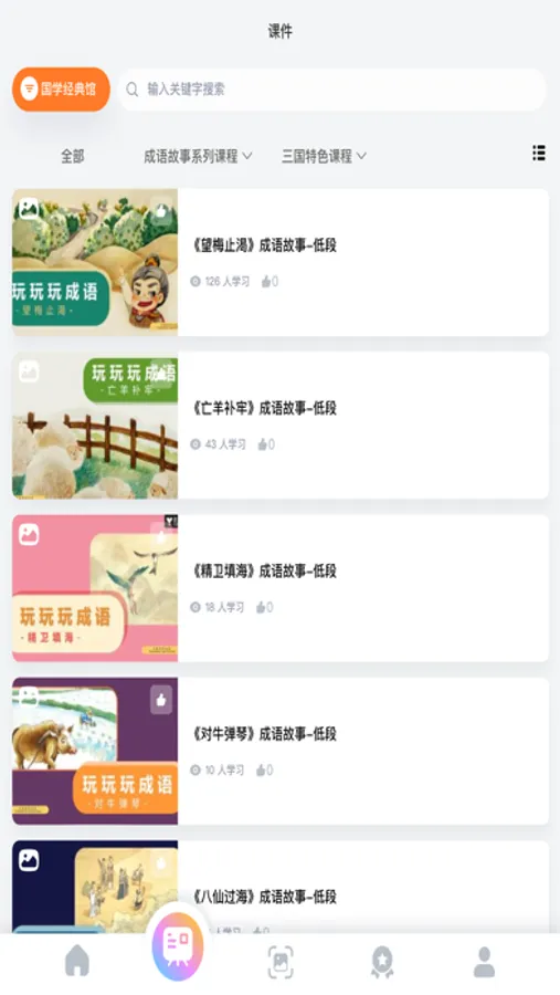 覆盖6岁以上年龄段,涵盖丰富的美育知识、课程与学习资料、国学经典馆—成语系列课程:含原创手绘绘本、课程大纲,教学目标,绘本视频、课程PPT,范画操作视频等