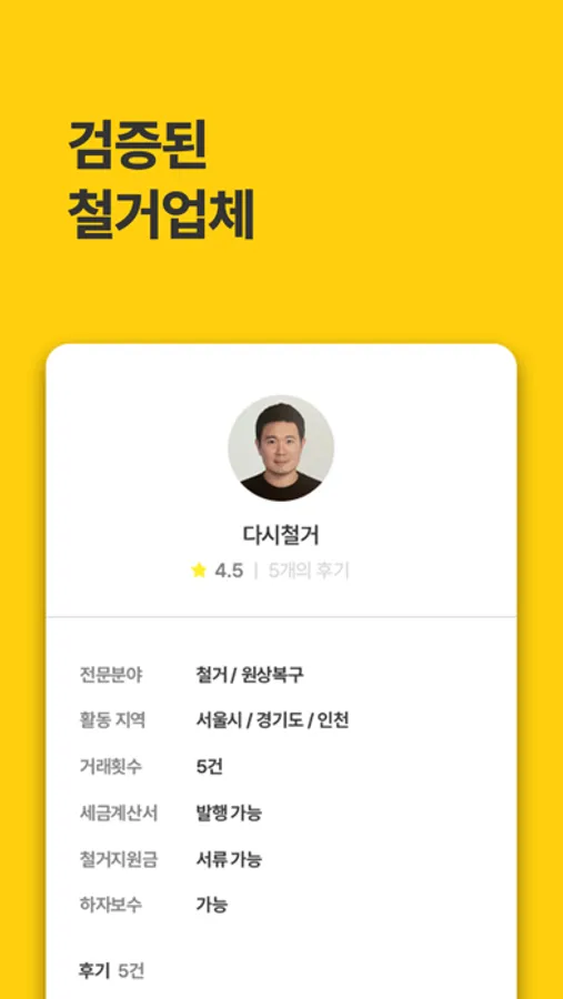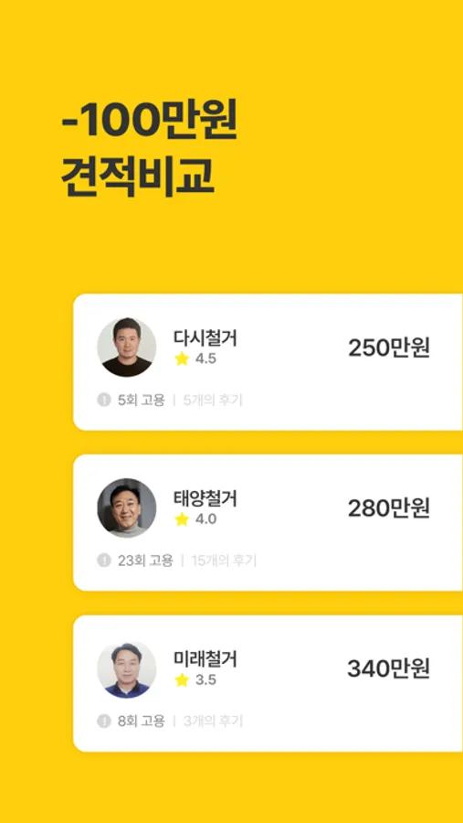 철거 할 사진 5장만 올리면, 평균 3개 이상 견적서를 받아볼 수 있습니다.
