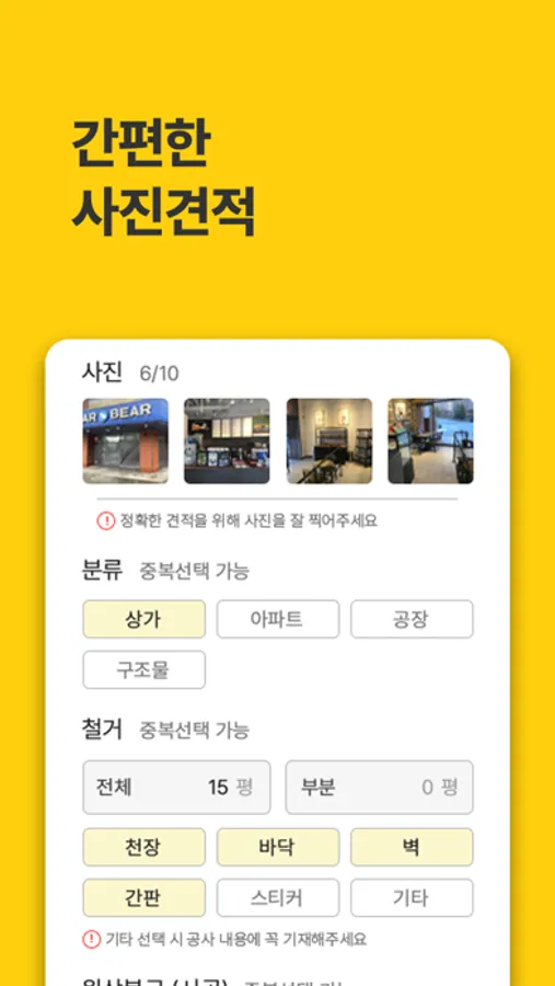 ● 현장 사진 5장과 요청서 작성으로 견적요청