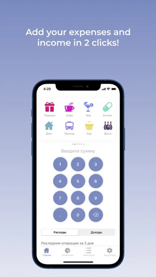 Do you want more understanding of where your money goes? Add your expenses and income in 2 clicks!