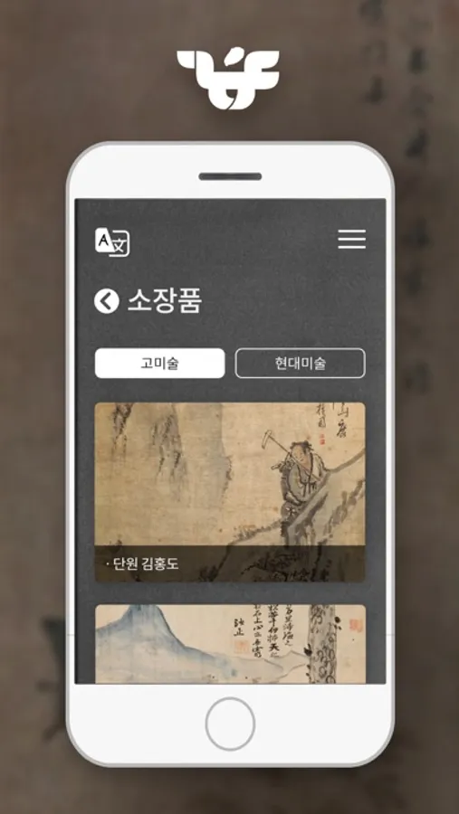 Kimhongdo Art Museum's app allows you to enjoy the museum's collections, the lives of artists, and the world of works with explanatory articles, photos, and docent voices.