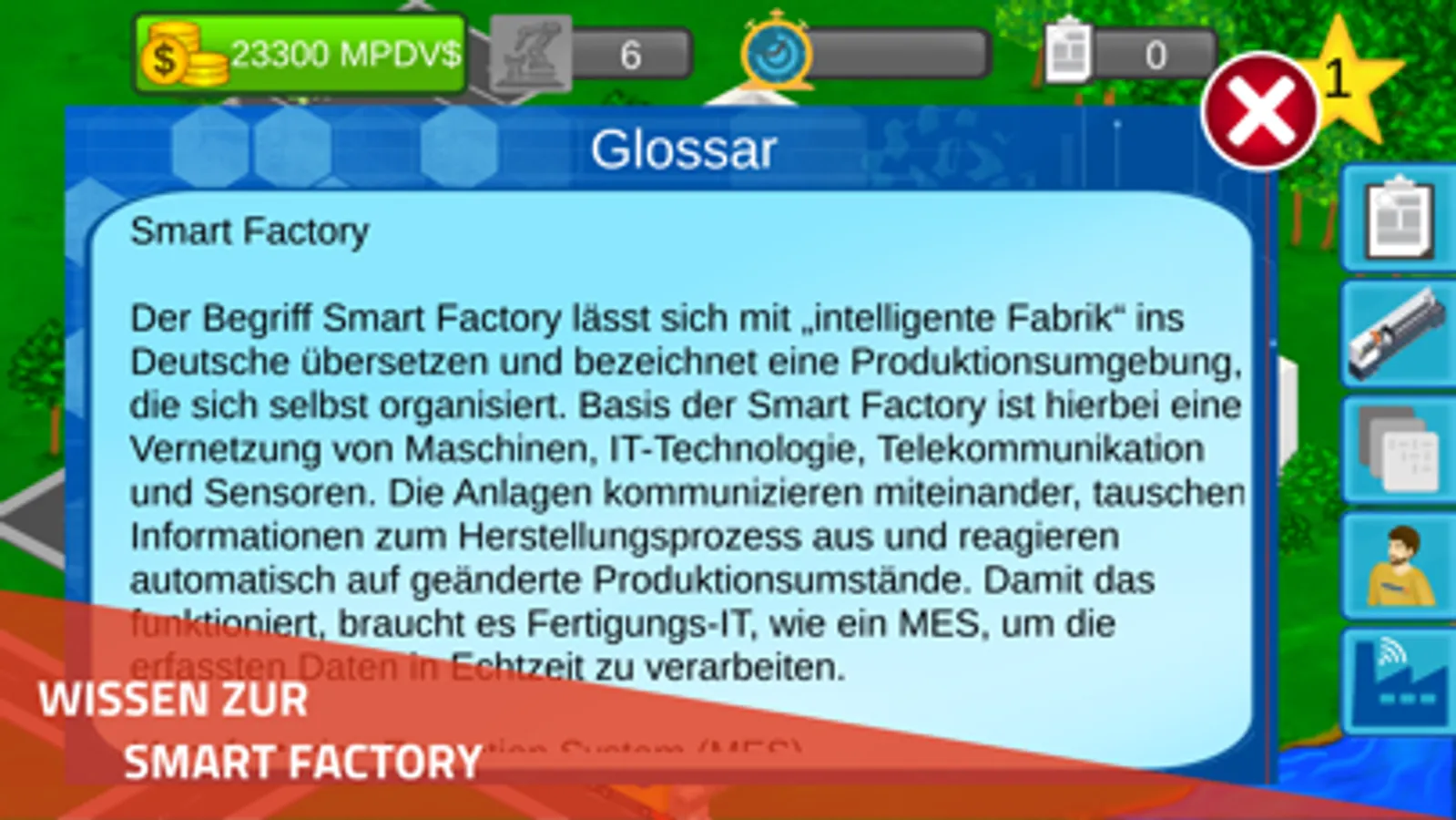 Im Rahmen der Nachwuchsförderung bietet die MPDV Mikrolab GmbH die Serious Gaming App "myFactoryMania" an, die die Vorteile einer Smart Factory spielerisch vermittelt. In verschiedenen Levels lernen Sie anschaulich wie mithilfe einer Smart Factory effizienter produziert und flexibler auf Ereignisse reagiert werden kann. Die App richtet sich dabei an jeden der eine Smart Factory in vereinfachter Form kennenlernen möchte. Eine wichtige Zielgruppe sind hierbei auch Schüler und Studierende.