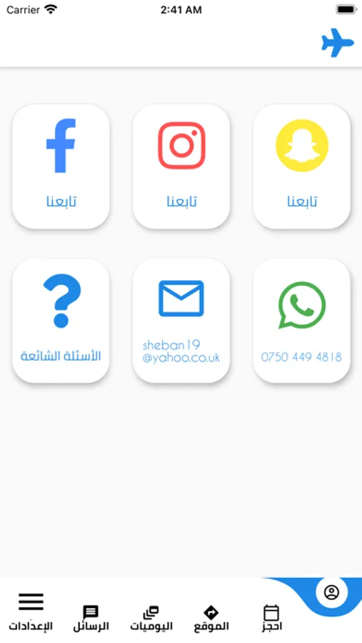 تطبيق حجز مواعيد وعرض معرض اعمال ومراسلة ويدعم 3 لغات :