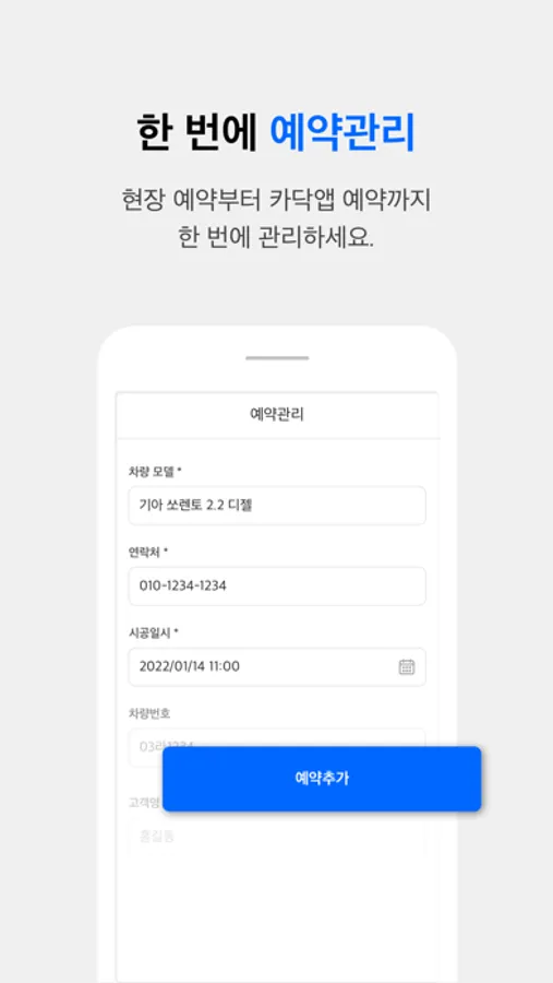 -실시간 예약 통합 관리 - 스마트폰으로 시간과 장소 구애없이 카닥 외 예약도 추가하고 관리할 수 있습니다.