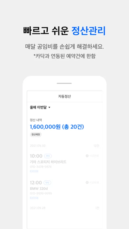 3. 공임비 정산 내역 확인 - 정산을 빠르게! > 카닥을통해 작업한 내용을 쉽게 확인하고 청구할 수 있습니다
