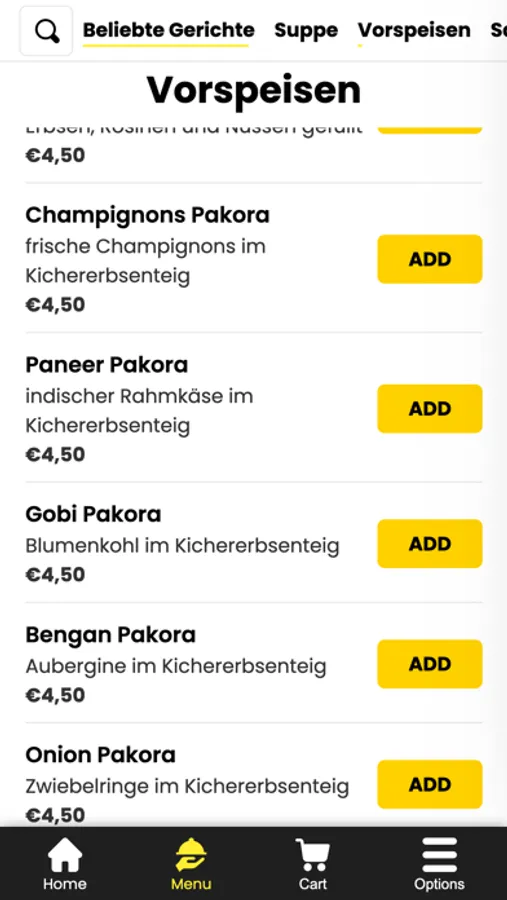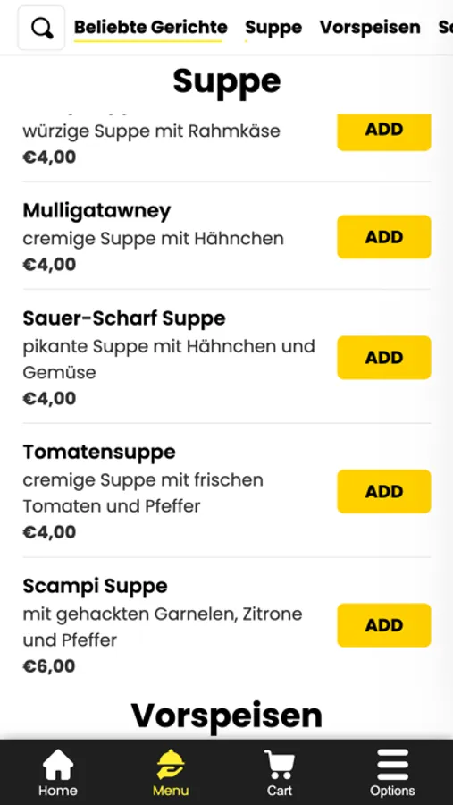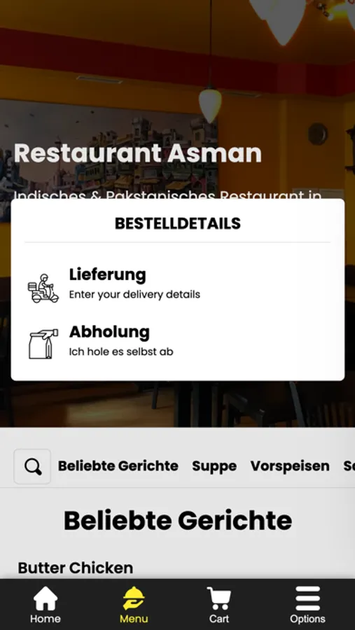 - Durchsuchen Sie die Speisekarte des Restaurants und sehen Sie sich alle anpassbaren Optionen im Voraus an