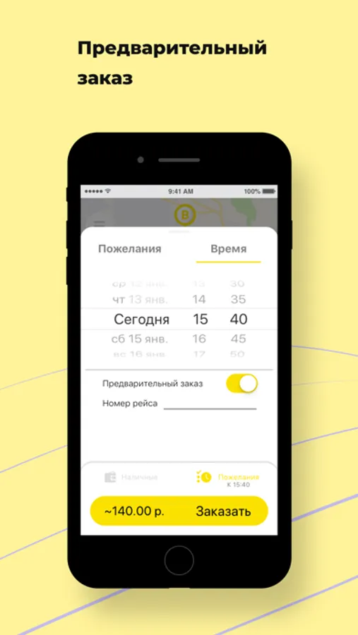 Закажи такси к конкретному времени и дате, и мы подадим машину тогда, когда это будет тебе необходимо.