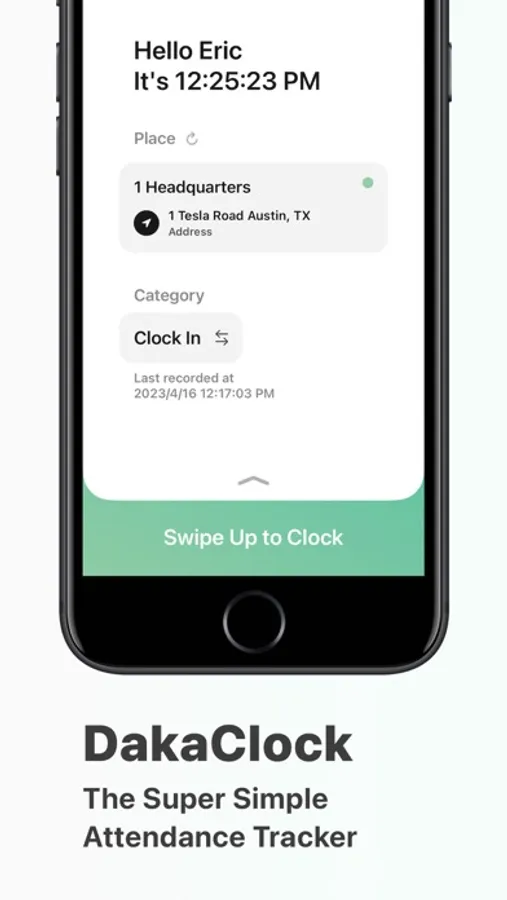 Track attendance by simply having personnels swipe up to clock-in/clock-out at customized locations.