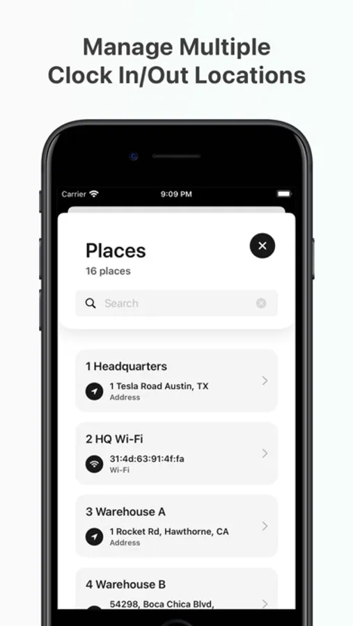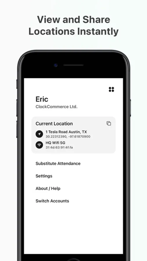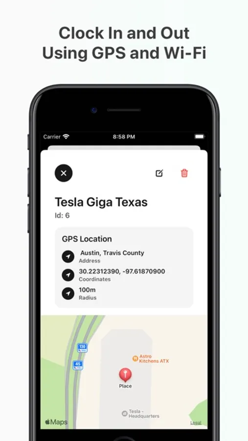 - Wi-Fi and GPS location-based clock-in/clock-out