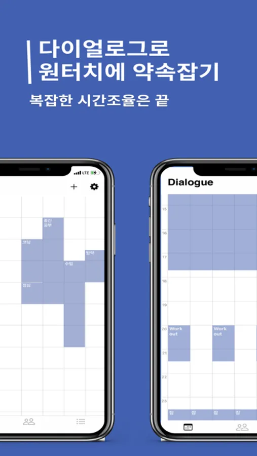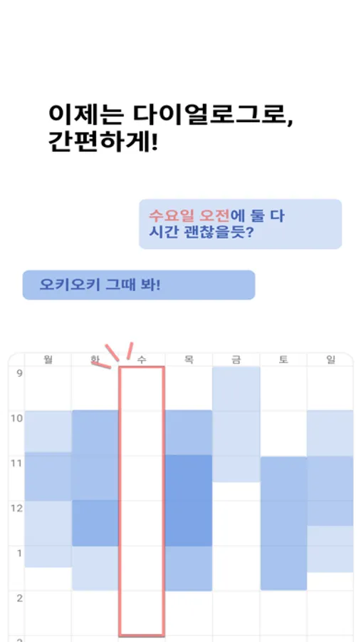 다이얼로그는 당신이 기록해 놓은 스케쥴러를 바탕으로 비는 시간대를 추적해 당신의 친구 또는 팀과 대신 약속을 잡아줍니다.