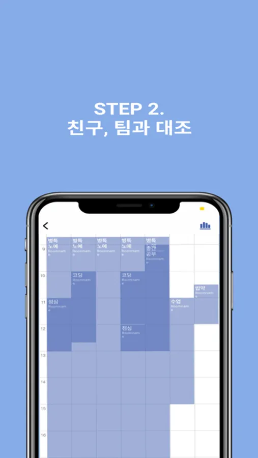 단 몇번의 터치로 친한 친구의 스케쥴을 확인하고, 대조 버튼을 클릭해 서로의 빈 시간대를 확인하세요. 같이 만날 약속 잡는 일이 이토록 쉬웠던가요? 스케쥴 이름은 공개되지 않으니 안심하세요.