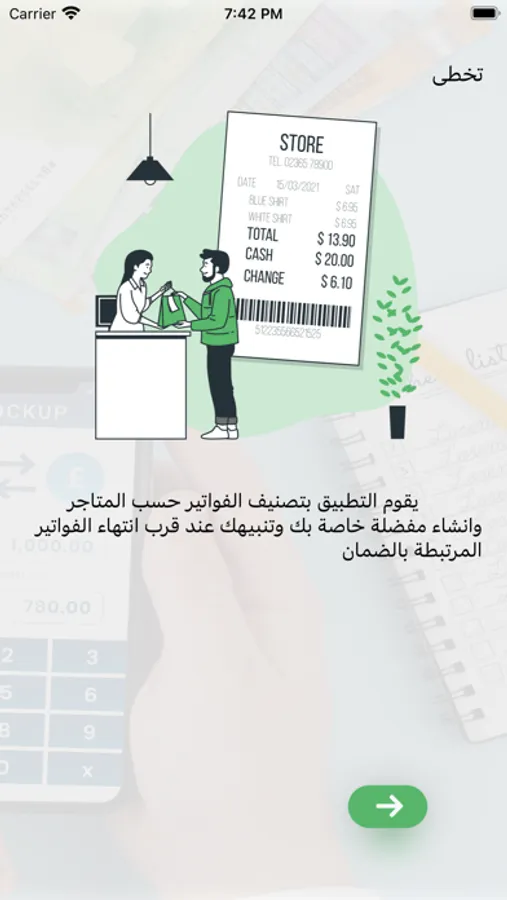 يقوم التطبيق بتصنيف الفواتير حسب المتاجر وانشاء مفضلة خاصة بك وتنبيهك عند قرب انتهاءالفواتير المرتبطة بالضمان عرض الفاتورة و طباعتها في أي وقت .