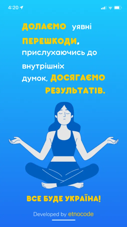 Ідея додатку - підтримати саме Українців у цей непростий період. Відкрийте додаток. Подумки сформулюйте свій запит або пережівання. Проведіть пальцем по геометричній фігурі , яка з'явиться на екрані та отримайте повідомлення, яке дасть відповіді на ваш стан... Вірте, Усе Буде Україна!