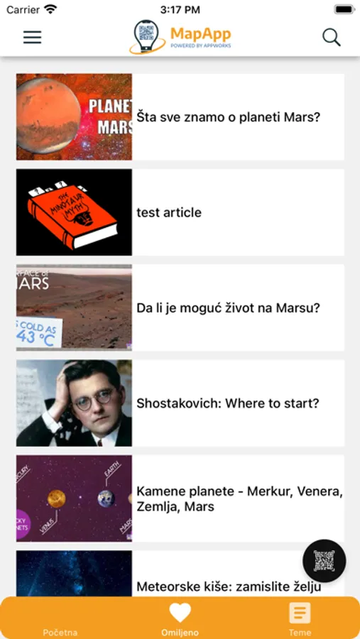 Prvim skeniranjem QR koda aktiviraćeš sadržaj tog postera. Kad sledeći put pokreneš aplikaciju, sav sadržaj nalaziće se u meniju „Tema”. Naravno, do njega možeš i kasnije da pristupaš skeniranjem QR koda.