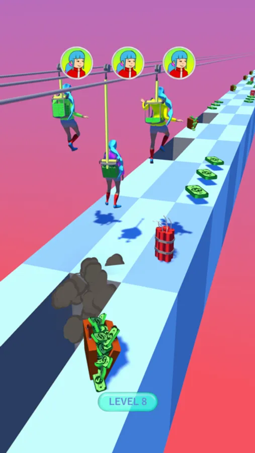 Tap and hold to control 3 girls simultaneously and watch out for obstacles. Make sure the girls