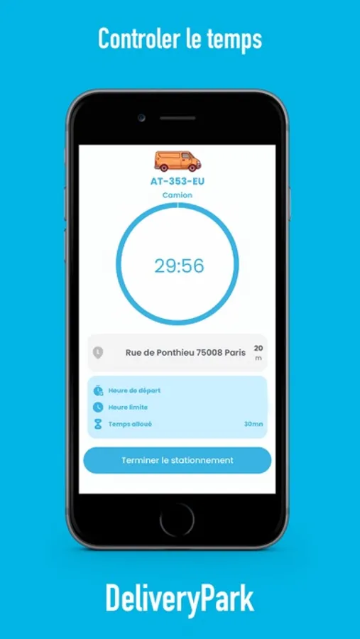 En 1 clic, sélectionner la place de livraison sur laquelle vous vous trouvez et profiter d'une durée de stationnement indiqué sur votre smartphone. En prime, vous êtes tenus au courant du temps restant et de l'adresse de votre stationnement.