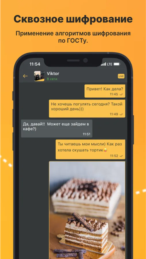 Не просто чувствуйте себя в полной безопасности, а будьте в ней - высокий уровень приватности и безопасности за счет применения сквозного шифрования, ни одно ваше сообщение не попадет в чужие руки, ваши сообщения принадлежат только вам. Применение уникальных технологий Live и системы защиты чатов обеспечат максимальную безопасность вашего общения. И никакой рекламы, совсем.