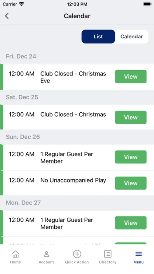 - View Calendar and Club Events