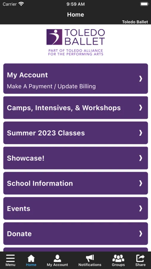 This application is intended to assist you in accessing and managing class and event programming provided through the education activities of Toledo Alliance of the Performing Arts