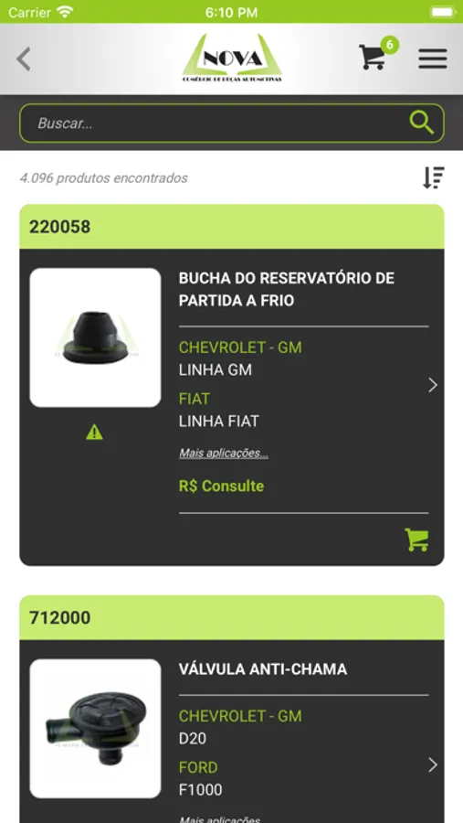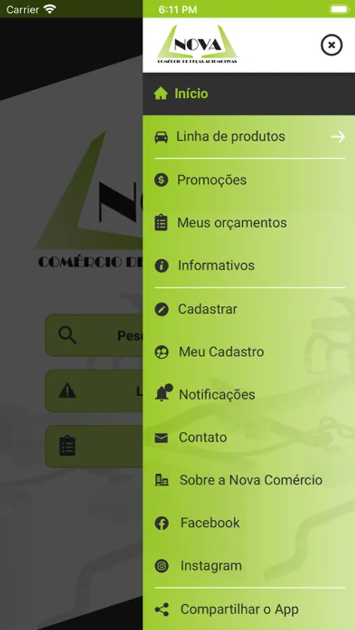 No aplicativo da Nova Comércio, você poderá consultar nosso portfólio, ter acesso as aplicações das peças, códigos, fotos e muito mais! Poderá também fazer orçamentos, consultas e etc. Não perca mais tempo, cadastre agora e tenha a Nova em suas mãos!