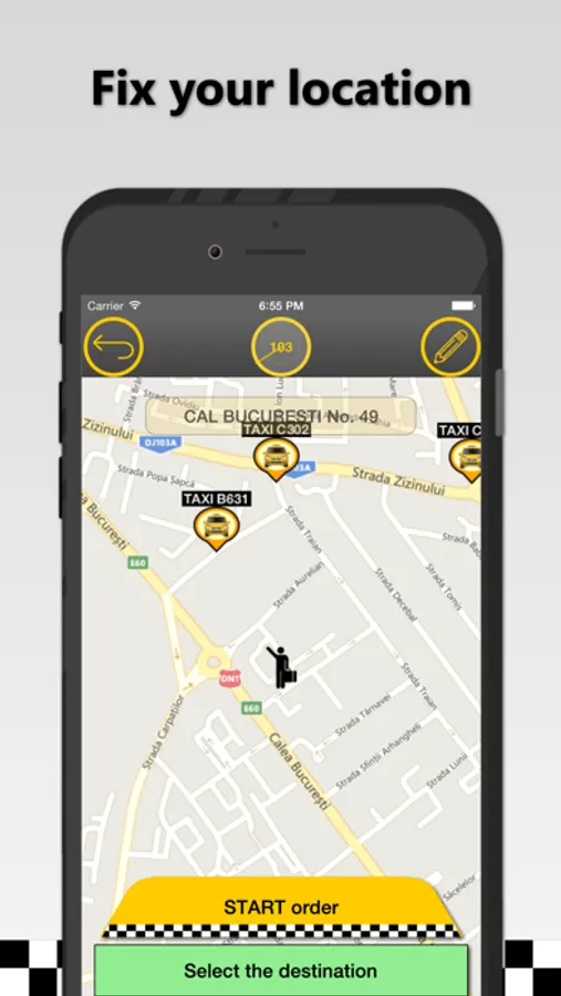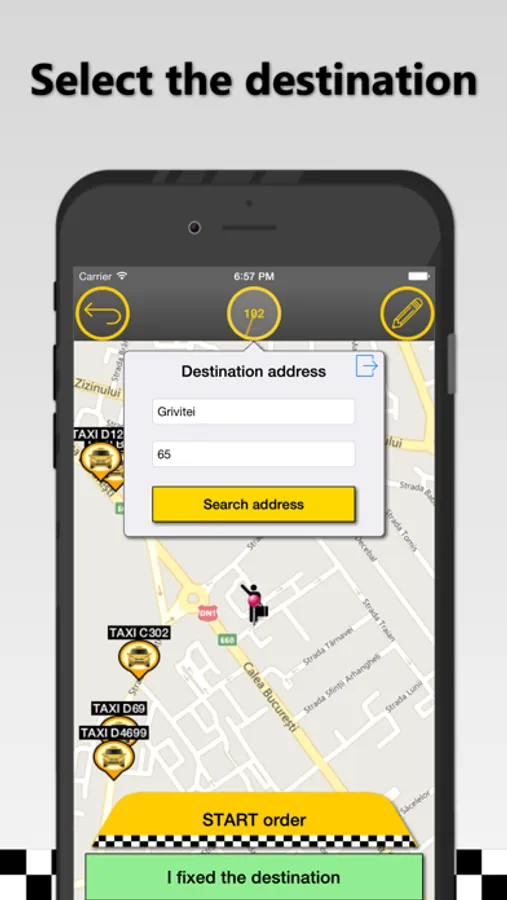 - The location of the terminal is automatic, for adjustment move the map so that the location for TAXI arrival is the desired place.