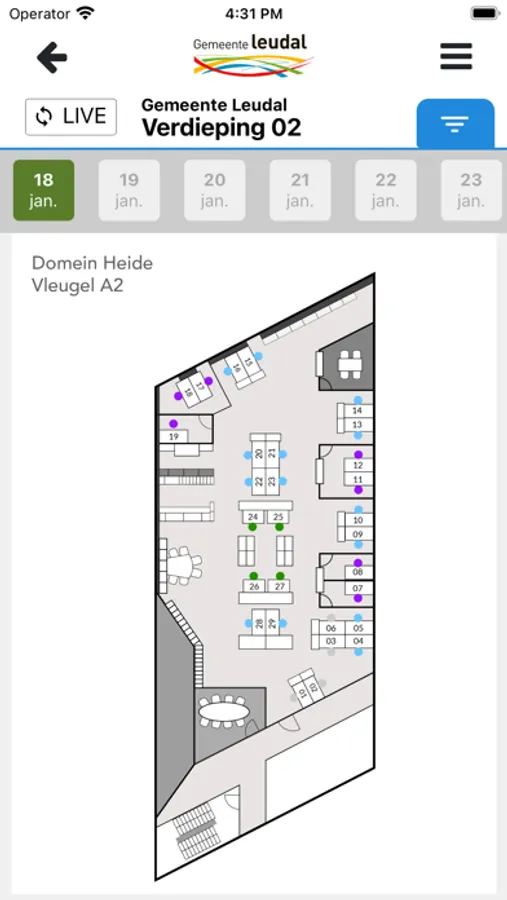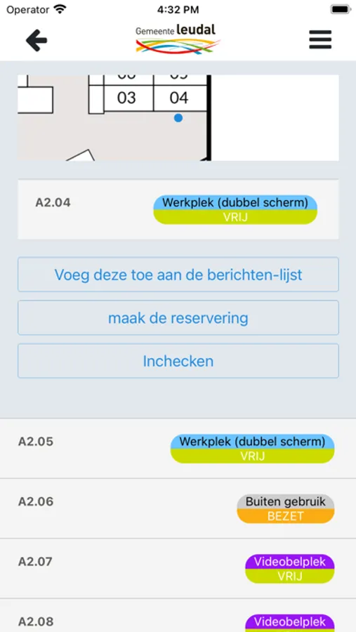 Deze app kan worden gebruikt door bezoekers en medewerkers van de Leudal organisatie voor het reserveren van werkplekken.