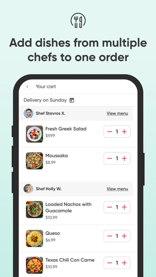 Shef offers the greatest selection of authentic, homemade dishes from around the world by connecting you with talented shefs in your neighborhood. All dishes are made to order, with freshly sourced ingredients and the care that can only come with a homemade meal. Dishes arrive refrigerated — just heat, eat and repeat!