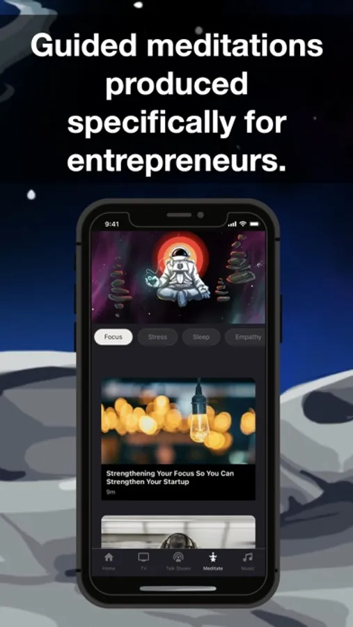 The app also features a series of guided meditations designed to help entrepreneurs harness the power of their brainspace. By doing so, we can physically strenghten your brain, allowing you to more easily build your business.