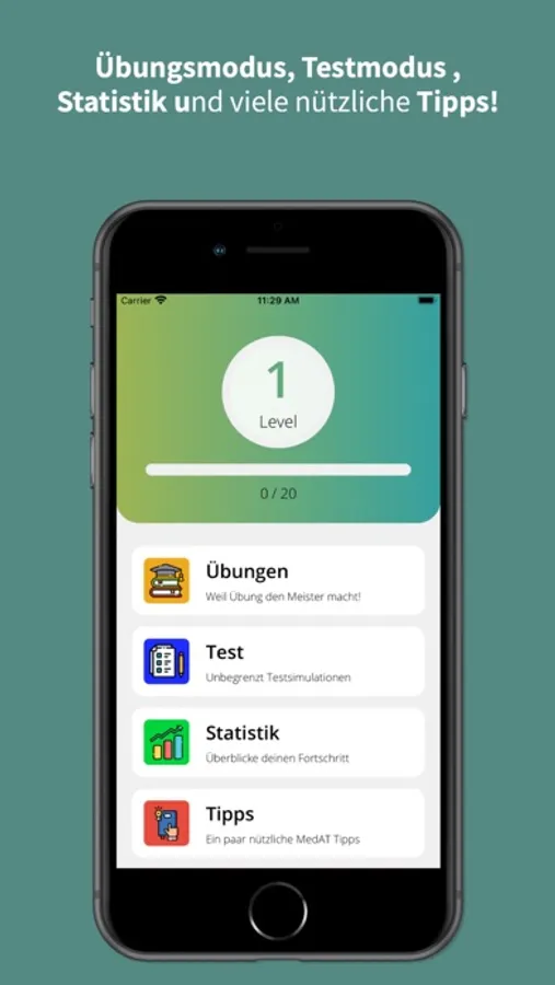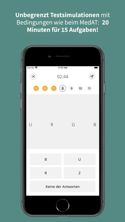 Die App bietet dir zwei verschiedene Vorbereitungsmöglichkeiten, den Testmodus und den Übungsmodus, damit du dich gezielt auf die Herausforderungen des MedAT Wortflüssigkeitstests vorbereiten kannst.