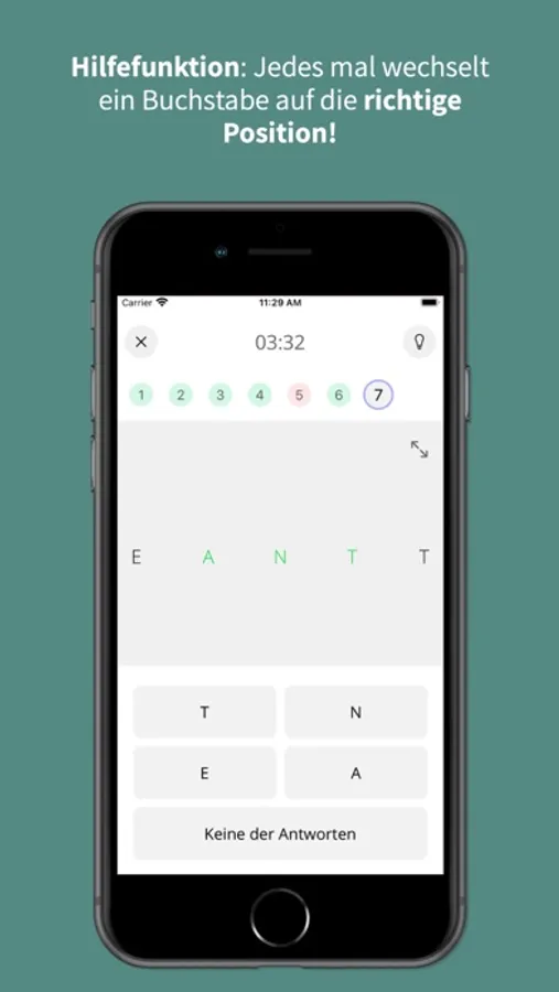 In den drei unterschiedlichen Schwierigkeitsstufen stehen wir dir außerdem immer mit einer sehr nützlichen Hilfefunktion zur Seite! Eine Hilfefunktion steht dir immer zur Seite, um bei Bedarf einen Buchstaben an die korrekte Position des gesuchten Wortes zu bringen. Wenn du einmal nicht weiterkommst, wird dir die korrekte Lösung angezeigt, damit du beim nächsten Mal besser vorbereitet bist.