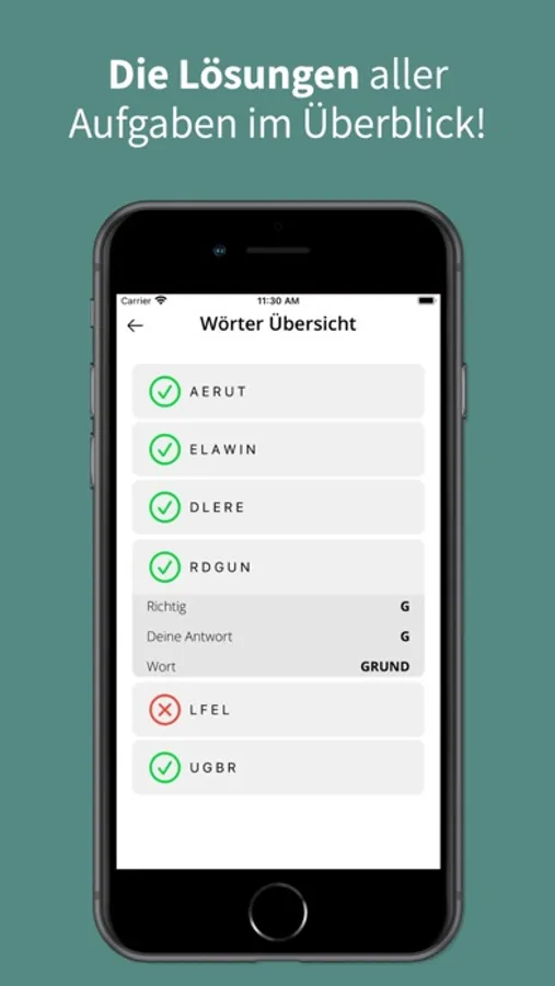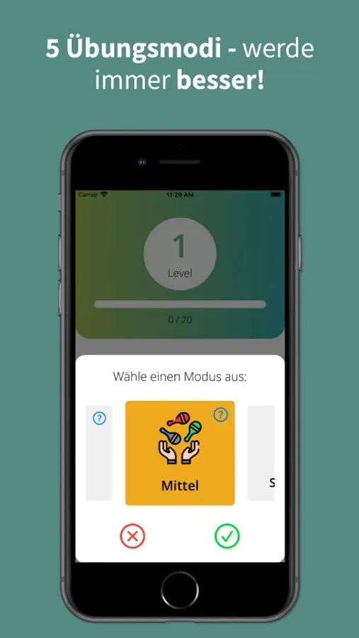 Der Übungsmodus bietet dir die Möglichkeit, die Schwierigkeiten der gesuchten Wörter individuell auf dich abzustimmen!
