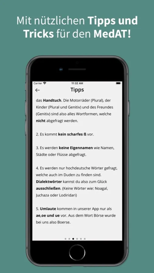 Auch Tipps und Tricks zur App und zum Wortflüssigkeitstest findest du in einem speziellen Abschnitt. Hier erfährst du, wie du das Beste aus der App herausholen kannst und wie du dich gezielt auf den MedAT Wortflüssigkeitstest vorbereiten kannst.