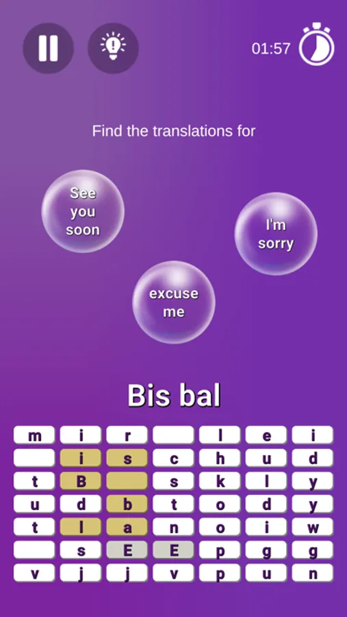 Bubbles helps you achieve your language learning goals, with an efficient approach by mastering the vocabulary, using interesting puzzles. This is how it works: