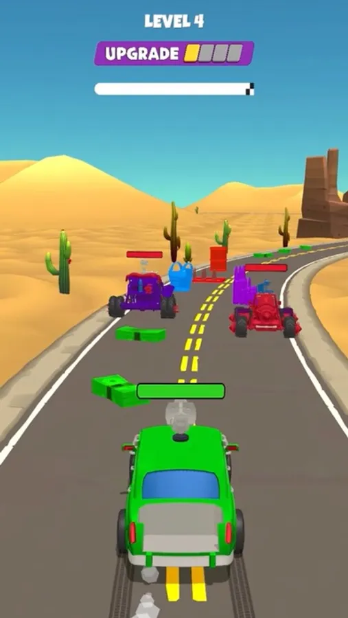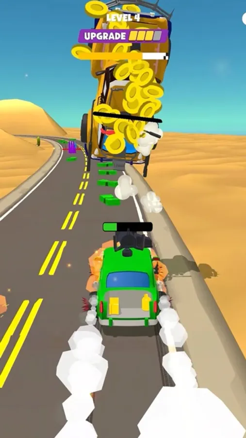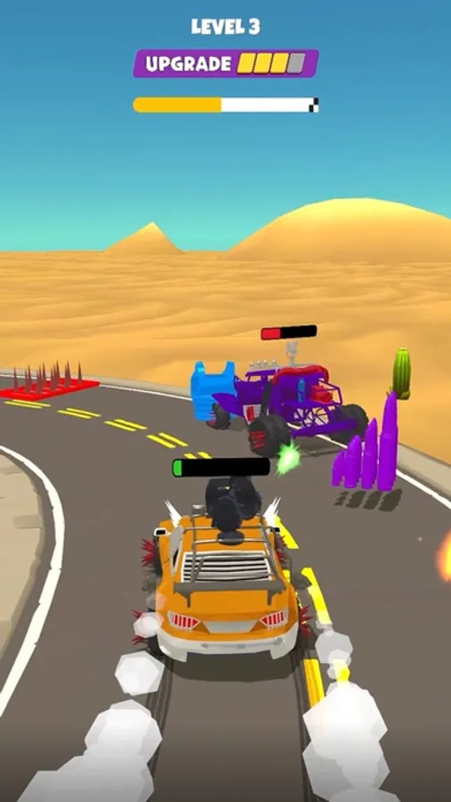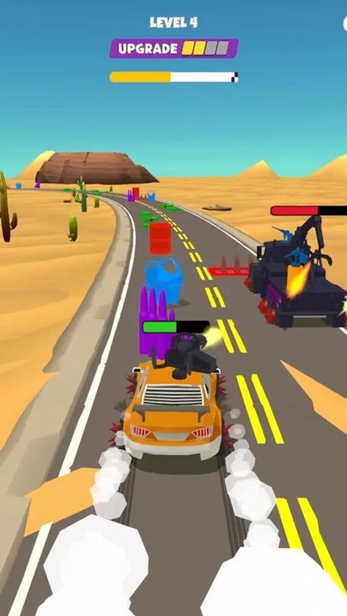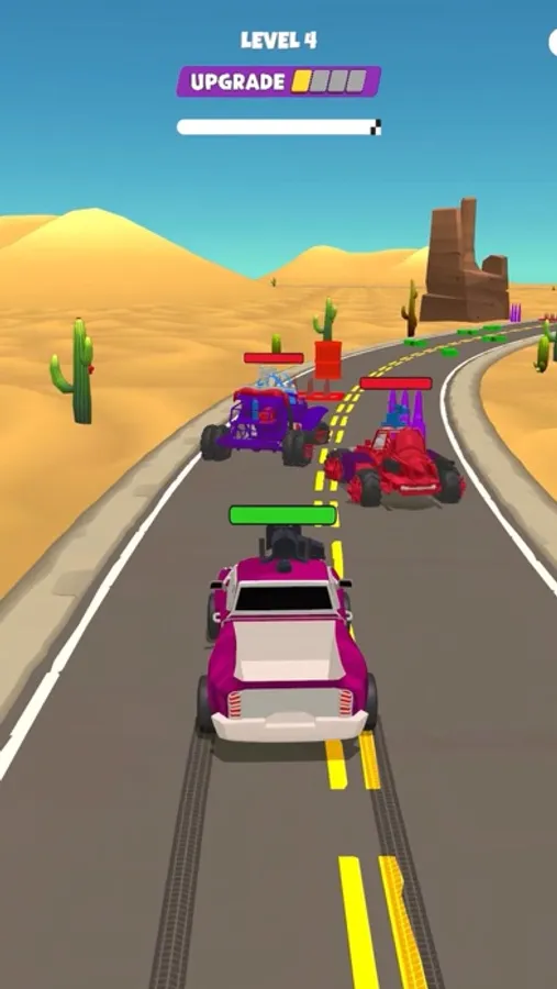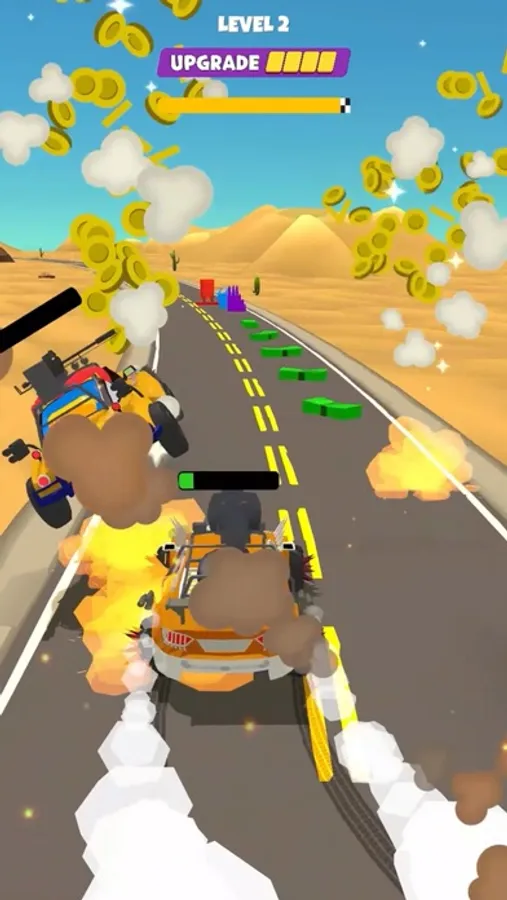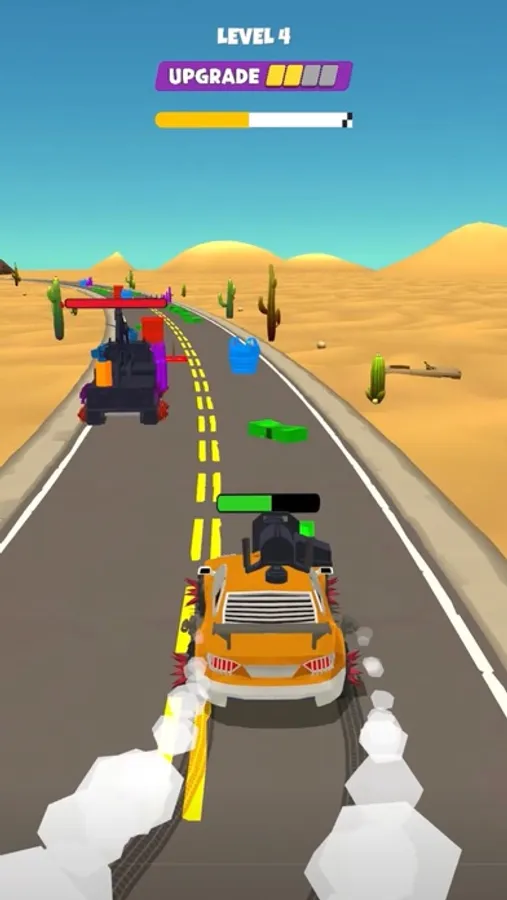 Destroy every enemy in your way with 4-wheel monsters. Now jump into your vehicle, upgrade it by collecting the pieces on the road and destroy everyone in your way until the finish. Simple mechanics, easy gameplay, eye-catching graphics.