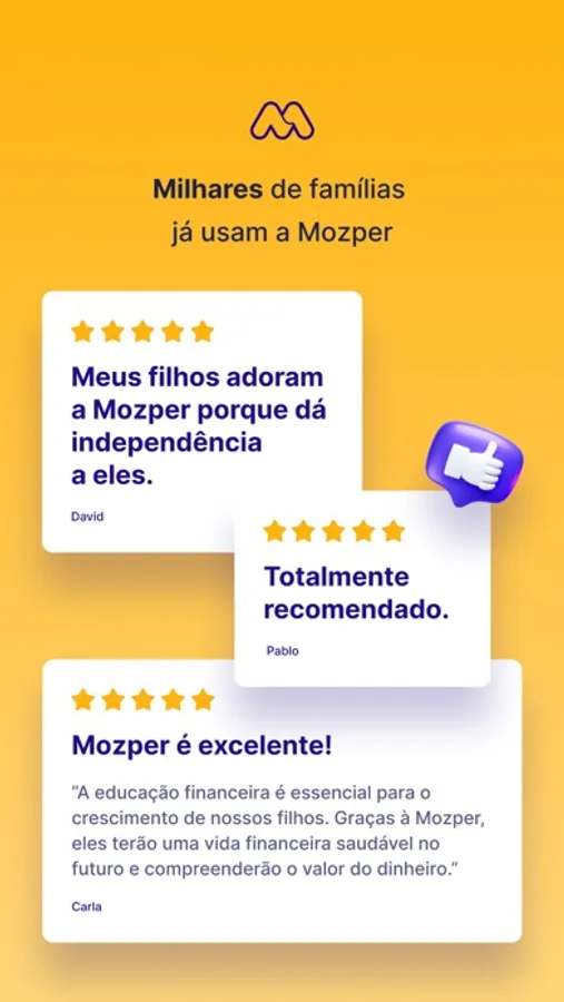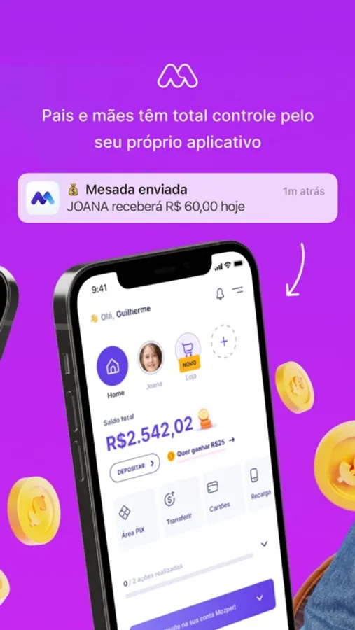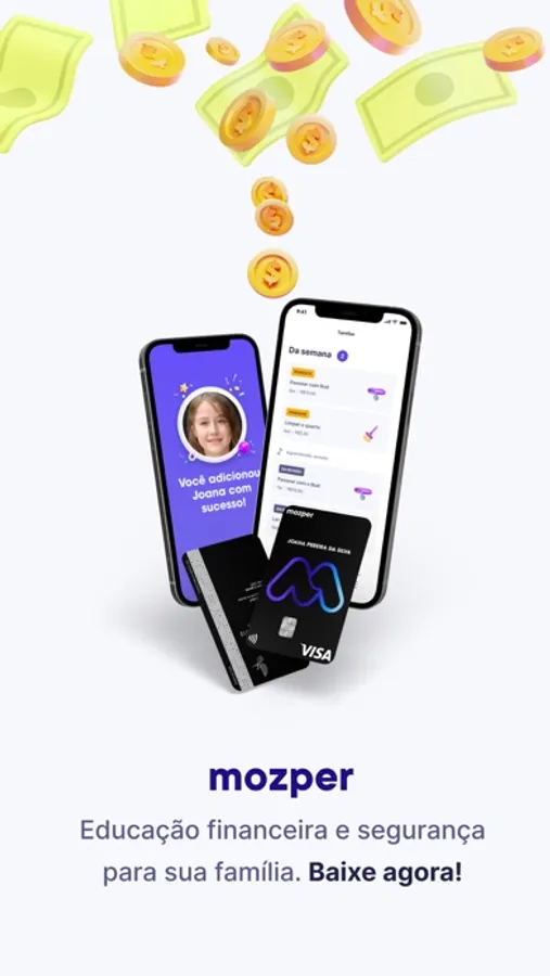 Mozper é o cartão para crianças e adolescentes que apoia os pais na educação financeira dos seus filhos com segurança e tranquilidade. Seus filhos vão receber seu primeiro cartão Visa sem gerar dívidas, onde podem receber e gastar a mesada. Mozper é o aplicativo ideal para os pais ensinarem aos seus filhos os bons hábitos ao lidar com dinheiro, promovendo a gestão do orçamento de forma consciente, incentivando a poupança através da definição de metas de poupança possíveis e compreendendo o verdadeiro valor do dinheiro por meio do esforço na realização de tarefas.