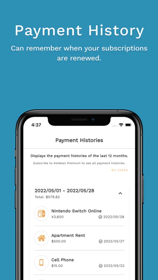 Kotekan gives you the best experience in subscriptions/fixed costs management than any other app!