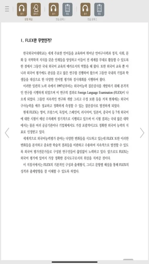 FLEX(FOREIGN LANGUAGE EXAMINATION)란 외국어능력검정시험을 말하며, 우리 실정에 맞는 외국어능력시험 개발에 앞장서 온 한국외국어대학교가 대한상공회의소와 공동으로 시행하는 외국어능력을 검증하는 공인된 시험제도입니다.