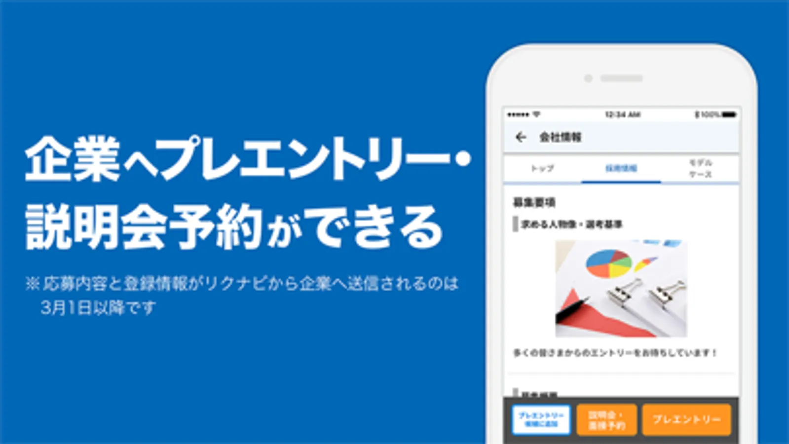 ※応募の内容と登録情報がリクナビから企業へ送信されるのは2023年3月1日(水)以降です