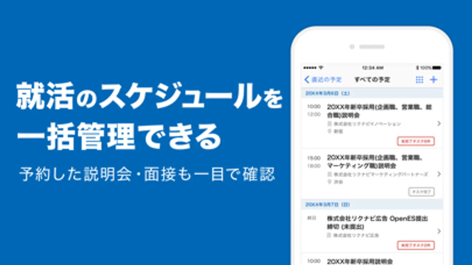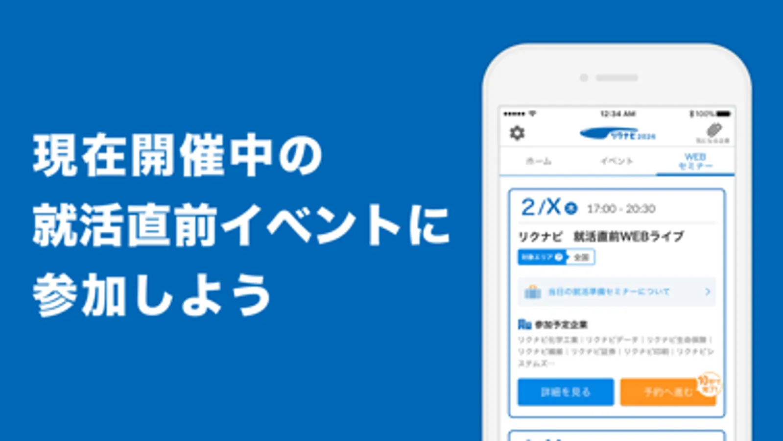 リクナビから予約した説明会やイベントの予定を、アプリから確認することができます。