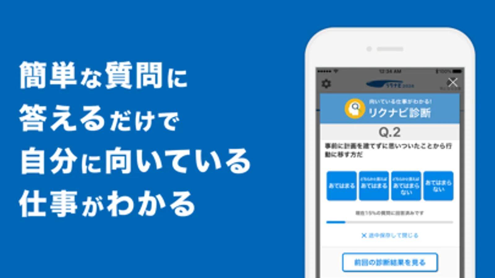 簡単な質問に回答して、約5分であなたに向いている仕事を知ることができます。