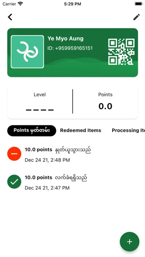 Set up Thukha Loyalty for business, and your can earn points & add redeem item using just their phone number.