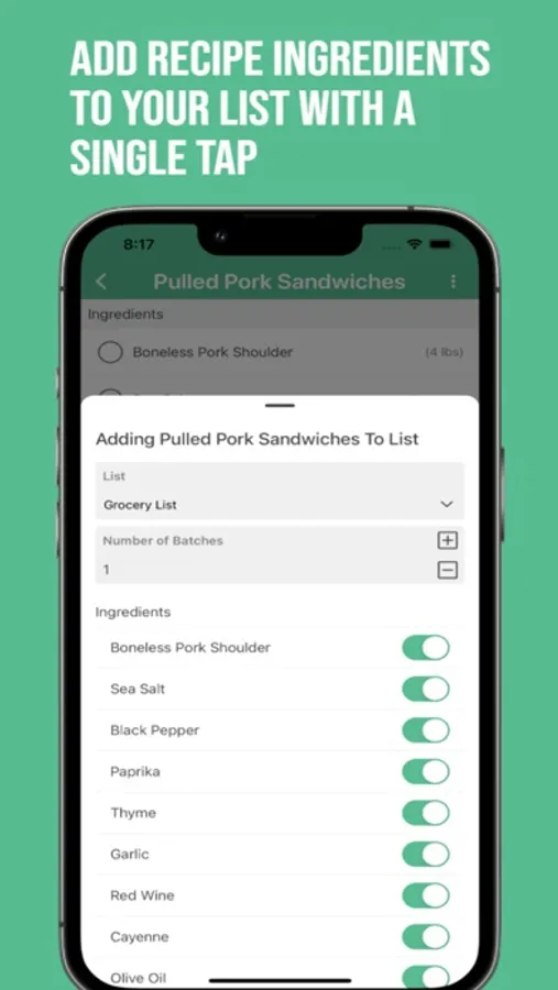 * Add Recipe Ingredients To Your List With A Single Tap *