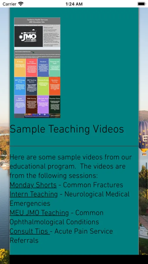 CanberraJMO is an app devoted to coordinating and providing education, administrative and welfare information for Junior Medical Officers working in the ACT. Teaching Calendar, Teaching Video Channels, videos from the educational program.