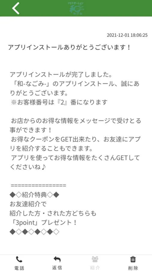 なごみのアプリをSNSを通じてお友達に紹介する事ができます。